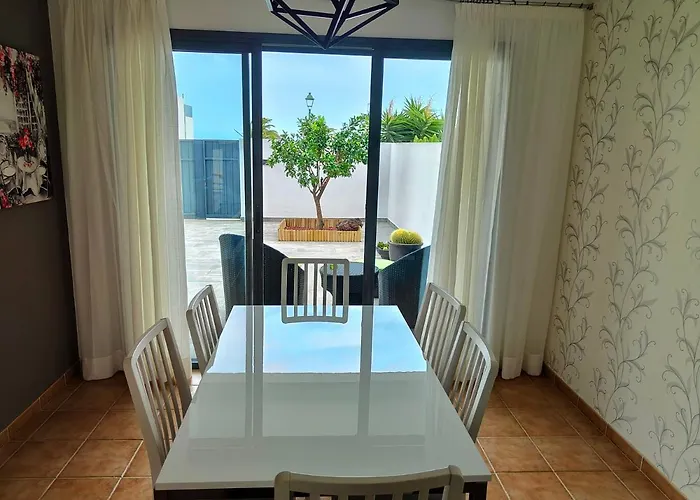 Esta villa de 150 m² está situada a una distancia de 1 km del aquapark Costa Teguise y a aproximadamente 4 km del Charco de San Ginés. El lugar está a 1 km del centro de Costa Teguise.